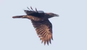 Brown-necked Raven is distributed across various regions of Pakistan, including arid and semi-arid habitats such as deserts, scrublands, and rocky areas. It is commonly observed in both urban and rural areas, often foraging for food in open landscapes, garbage dumps, and agricultural fields.