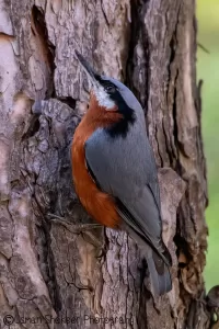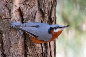 Chestnut-bellied Nuthatches are highly active birds, constantly on the move as they search for food. They typically forage for insects and seeds by probing crevices in tree bark or extracting them from cones and branches. They are known to form small family groups or pairs, often communicating through soft calls and chirps. These birds are also known for their acrobatic abilities, maneuvering adeptly among branches and tree trunks in their search for food.