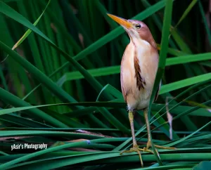 The Cinnamon Bittern (Ixobrychus cinnamomeus) in Pakistan is a small bittern with a height reaching 41 cm and a length of 38 cm. This bird has a general body color of red-brownish orange, with adult males displaying a chestnut brown upper body and dark orange cinnamon lower body with a black line in the middle and a whitish color on the side of the neck. Females have a darker coloration with striped upper bodies and mottled lower bodies. The Cinnamon Bittern is known for its skulking lifestyle in reed bed habitats, emerging at dusk to feed on insects, fish, and amphibians. It nests on platforms of reeds in shrubs, laying four to six eggs. This species can be challenging to spot due to its secretive nature and reed bed habitat, but it can be observed creeping almost cat-like in search of prey during the evening hours.