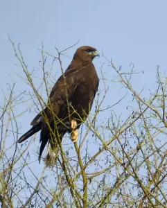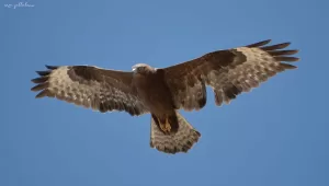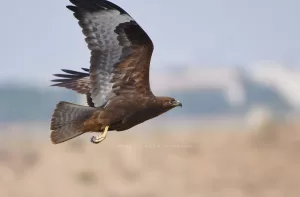 Common Buzzards are opportunistic hunters and scavengers. They primarily feed on small mammals, birds, reptiles, and carrion. They are often observed perched on elevated vantage points, such as trees, poles, or rock outcrops, from where they scan the surrounding area for prey. They use their keen eyesight and agility in flight to hunt, often soaring on thermal currents or circling above open areas while searching for food.