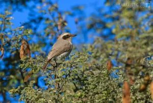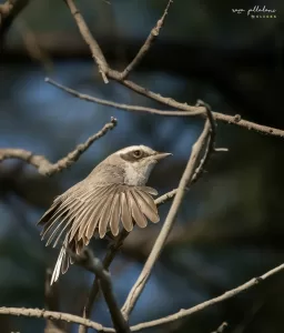 Common Woodshrike is an active bird, constantly on the move as it hunts for insects. It uses its sharp bill to capture prey, often darting out from its perch to snatch flying insects mid-air. Its distinctive call, a series of melodious whistles, can be heard echoing through the woodlands where it resides. During the breeding season, males may engage in territorial displays, singing loudly and chasing away intruders to protect their nesting sites. Despite its small size, the Common Woodshrike is an important component of Pakistan’s avian biodiversity, contributing to the ecosystem through insect control and serving as an indicator of habitat health.