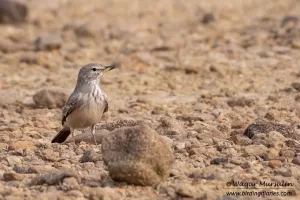 Desert Lark is primarily found in the desert and semi-desert regions of the country, including the Thar Desert in the province of Sindh, and the Cholistan and Thal deserts in the province of Punjab. It prefers sandy or rocky terrain with sparse vegetation, where it can forage for insects and seeds.