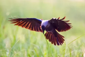 House Crows exhibit a range of behaviors that are well-suited to urban environments in Pakistan. They are highly social birds, often seen in large flocks roosting on buildings or foraging together for food. Their diet consists of a wide variety of items, including insects, small mammals, fruits, grains, and discarded human food. House Crows are opportunistic scavengers, frequently seen rummaging through garbage bins and dumpsters in search of food. They are also known for their vocalizations, with loud and raucous calls that are characteristic of urban landscapes in Pakistan. Despite being considered pests by some due to their scavenging habits, House Crows play an important ecological role in urban ecosystems by helping to control insect populations and recycling organic waste.