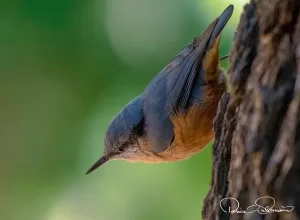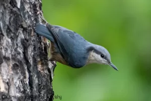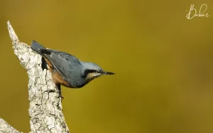 This bird is known for its acrobatic foraging behavior, often seen climbing up and down tree trunks and branches in search of food. It feeds mainly on insects, seeds, and nuts, which it wedges into crevices and hammers open with its bill. The Kashmir Nuthatch is also territorial, defending its feeding and nesting areas vigorously against intruders. During the breeding season, it constructs its nest in tree hollows or crevices, lining it with fur, feathers, and moss.