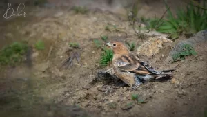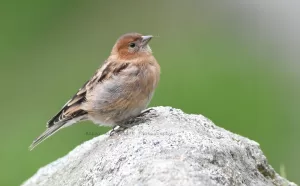 Plain Mountain-Finches are social birds, often seen in small flocks foraging on the ground for seeds and small insects. They have a distinctive bouncing flight pattern and emit soft, tinkling calls while in flight. During the breeding season, males engage in courtship displays to attract mates, often involving fluttering flights and vocalizations. This species is primarily sedentary, with little migration observed, although it may move to lower elevations in winter to avoid harsh weather conditions in the mountains.