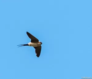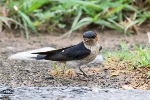 Red-rumped Swallow (Cecropis daurica) is a striking bird species found in Pakistan. It boasts a distinctive red rump and a deep chestnut face with a contrasting white forehead patch. Its upperparts are glossy blue-black, while its underparts are a creamy white. This medium-sized swallow species exhibits remarkable aerial agility, darting through the skies with graceful flight patterns.