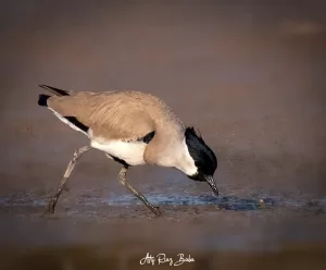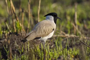 The River Lapwing is known for its bold and territorial behavior, often seen defending its nesting sites aggressively against intruders. It forages along riverbanks and in adjacent grasslands, feeding on insects, small crustaceans, and other invertebrates found in the mud and shallow waters. During the breeding season, River Lapwings engage in courtship displays, which may involve aerial acrobatics and vocalizations. They construct shallow ground nests lined with grass and vegetation, typically in concealed locations near water.