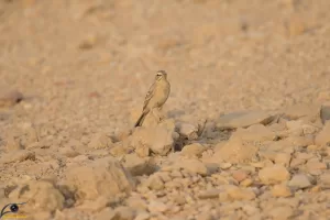 The tawny pipit (Anthus campestris) is a medium-large passerine bird which breeds in much of temperate Europe and Asia, and northwest Africa. It is a migrant moving in winter to tropical Africa and the Indian Subcontinent. The scientific name is from Latin. Anthus is the name for a small bird of grasslands, and the specific campestris means "of the fields". This is a large pipit, 16 centimetres (6.3 in) long with wing-span 25–28 centimetres (9.8–11.0 in),[3] but is an undistinguished looking species on the ground, mainly sandy brown above and pale below. It is very similar to Richard's pipit, but is slightly smaller, has shorter wings, tail and legs and a narrower dark bill. It is also less streaked. Its flight is strong and direct, and it gives a characteristic "schip" call, higher pitched than Richard's. Its song is a short repetition of a loud disyllabic chir-ree chir-ree. In south Asia, in winter some care must be taken to distinguish this from other large pipits which winter or are resident in the area, including Richard's pipit, Blyth's pipit and paddyfield pipit. Tawny pipit is insectivorous, like its relatives. The breeding habit is dry open country including semi-deserts. The nest is on the ground, with 4-6 eggs being laid. In Pakistan, Tawny Pipits are common winter visitor, preferring uncultivated barren tracts,from the foothills of KPK, Sind and Punjab, including eastern desert regions. Largely absent from Baluchistan except across Makran.
