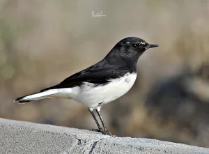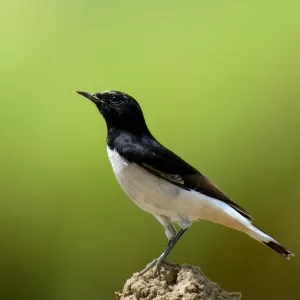 Variable Wheatear (Oenanthe picata) is a small passerine bird found in Pakistan. It has a distinctive black and white plumage with variable markings, hence its name. Males and females look similar, with a black mask-like marking across the eyes. It typically inhabits rocky areas, deserts, and open grasslands.