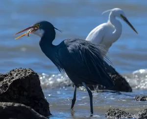 Western Reef-Herons are typically solitary or found in small groups. They are opportunistic feeders, preying on small fish, crustaceans, and other aquatic creatures. Their feeding behavior often involves patiently stalking prey along the water’s edge or standing still and waiting for suitable prey to come within striking distance.