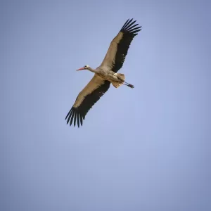 White Storks are highly migratory birds, traveling thousands of kilometers each year between their breeding and wintering grounds. During migration, they form large flocks, soaring high in the sky using thermal currents to aid their flight. They are skilled gliders and can cover vast distances with minimal effort.