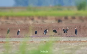 Woolly-necked Stork can be found in various regions across the country, including wetlands, rivers, lakes, and agricultural areas. They are particularly prevalent in the Indus River basin and associated wetlands, as well as in Punjab and Sindh provinces. During the breeding season, they may also venture into forested areas near water bodies.